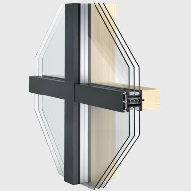 Viel Gestaltungsfreiheit für die moderne Glasfassade und alle Vorteile der Kombination Holz/Metall in einem.