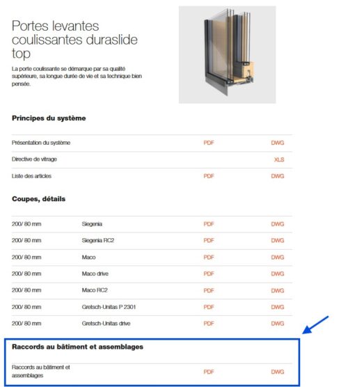 En complément, tous les textes de soumission pertinents pour les portes coulissantes et les systèmes de fenêtres sont téléchargeables sur la plateforme PRD/NPK au format .crbx. Les planificateurs et les soumissionnaires disposent ainsi d’une base fiable pour une offre efficace et conforme aux normes.